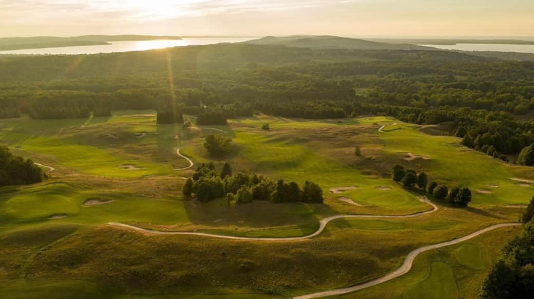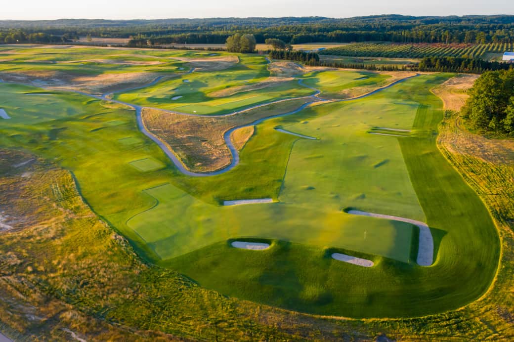 The Bluffs at Arcadia Bluffs, located on the shores of Lake Michigan, is the #1 public golf course in Michigan and nationally recognized for its exceptional design and breathtaking views. The 18-hole links-style course features dramatic bluffs, rolling fairways, and challenging greens that provide a memorable test for golfers of all skill levels. Set against the stunning backdrop of Lake Michigan and the surrounding natural landscapes, The Bluffs combines world-class golf with a welcoming atmosphere. Its renowned layout and luxurious amenities make it a premier destination for golf enthusiasts from around the country.